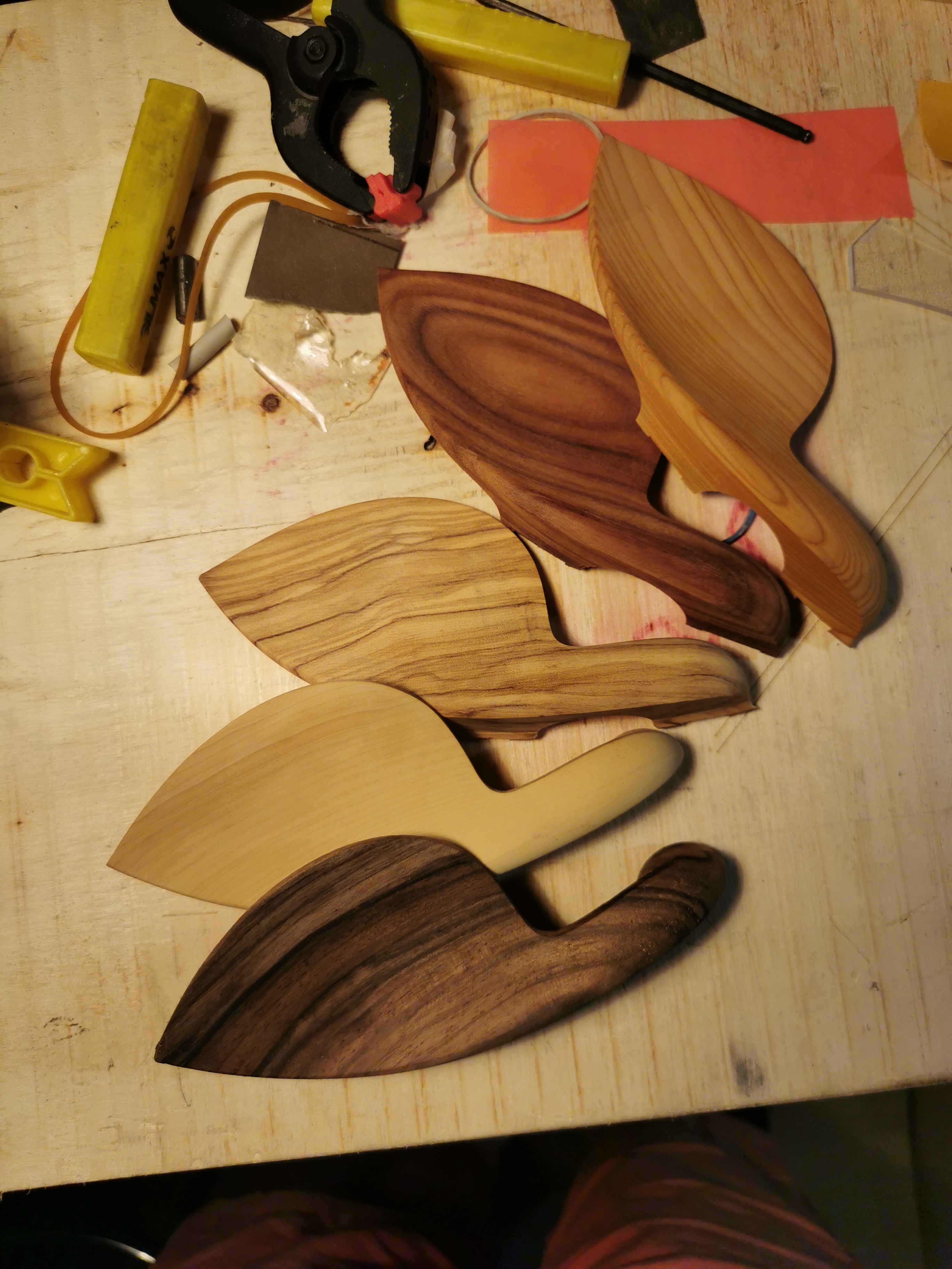 Esistono numerosi modelli di mentoniere, che differiscono per forma, posizione e materiale. La scelta del modello giusto è una questione molto personale, influenzata dalla conformazione fisica del musicista, in particolare dalla lunghezza del collo e dalla forma del mento.