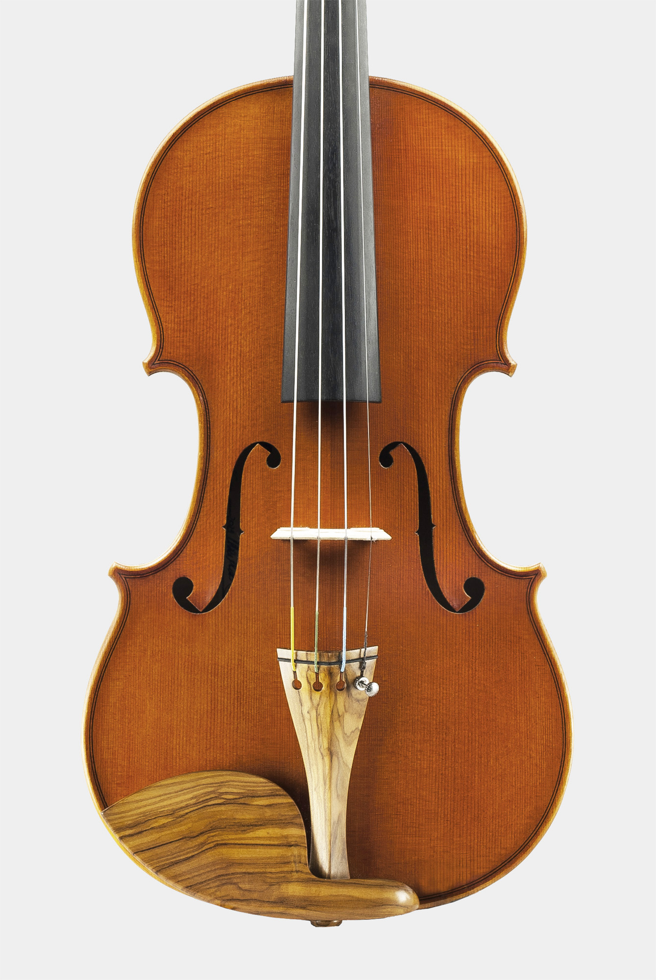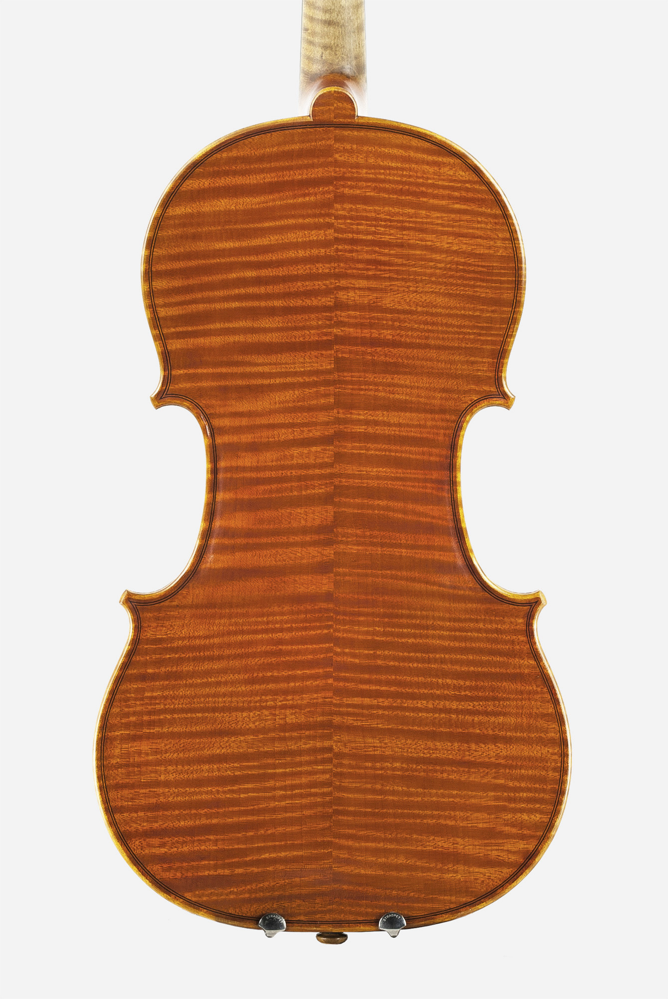Il fondo, le fasce ed il riccio sono ricavati dall'acero dei Balcani. Ha una marezzatura profonda (larghezza media) ed una specchiatura piuttosto evidente.